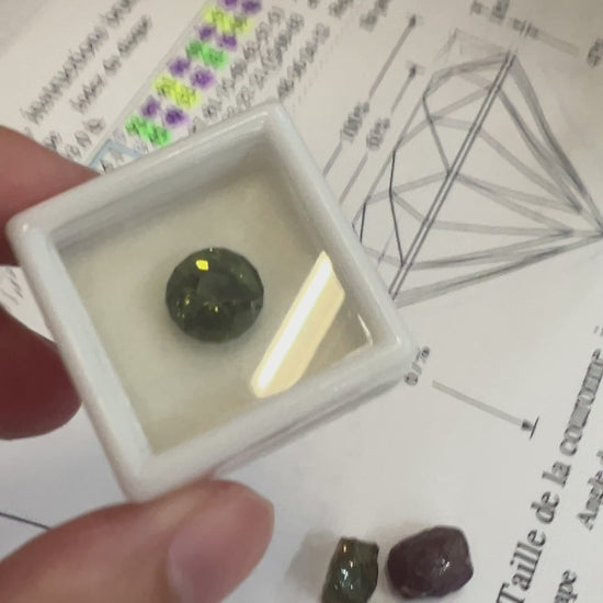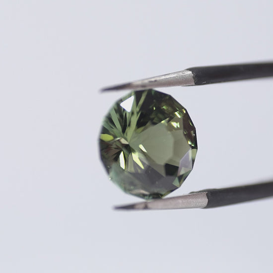 This 2.94-carat deep moss green tourmaline is cut in the classic round brilliant.